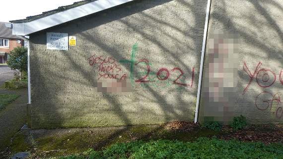‘The incident involved highly offensive graffiti drawn with red paint on a wall of the Shaldon Road Methodist Church in Newton Abbot.