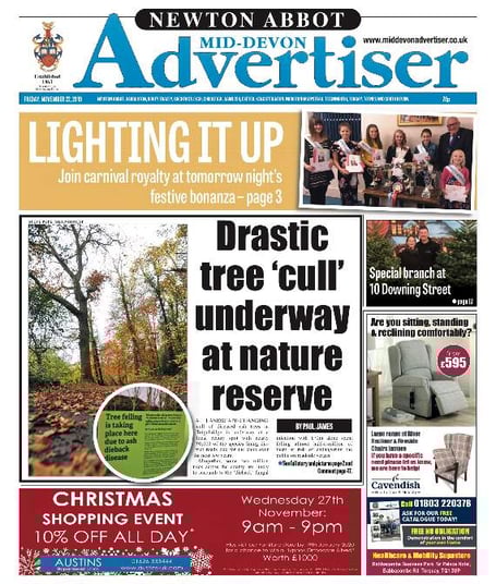 NewsDrastic tree ‘cull’ underway at nature reserveBy The Post Friday 22nd November 2019 6:00 am@https://twitter.com/thepostseries[email protected]SPREAD THE NEWSNewsletter Sign upGet your latest local news for free in your email inboxSubmit I would like to be emailed about offers, events and updates from Teignmouth Post. Read our privacy noticeOUT NOWAlso in the newsOne arrested after 16-year-old raped near train station in ExeterTen Tors 2025 is underwayYour weekly horoscope with Russell Grant'We’d love for you to be part of our next chapter', says Coraline Skincare ORDER YOUR DIGITAL EDITION HERECommentsThis article has no comments yet. Be the first to leave a comment.Comment