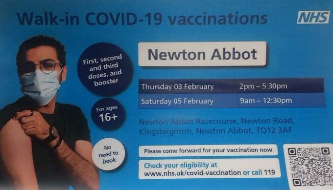 More walk-in session are available at Newton Abbot Racecourse today, Thursday, from 2pm to 5.30pm and Saturday from 9am to 12.30pm.