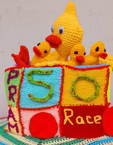 It featured yellow ducks to mark the carnival duck race as well as dozens of crochet squares which had been made by a woman with dementia.