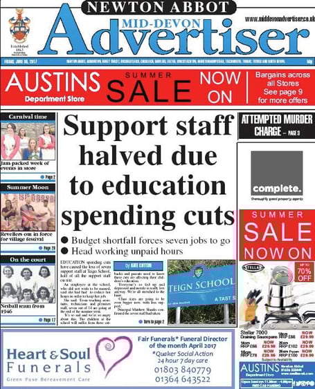 - EDUCATION spending cuts have caused the loss of seven support staff at Teign School, half of all of the support staff on site.