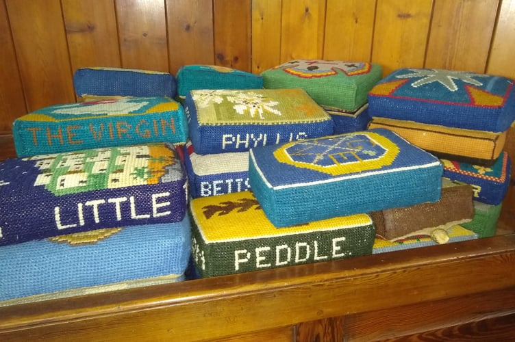 The kneelers have been lovingly created over many years to provide comfort for congregations.