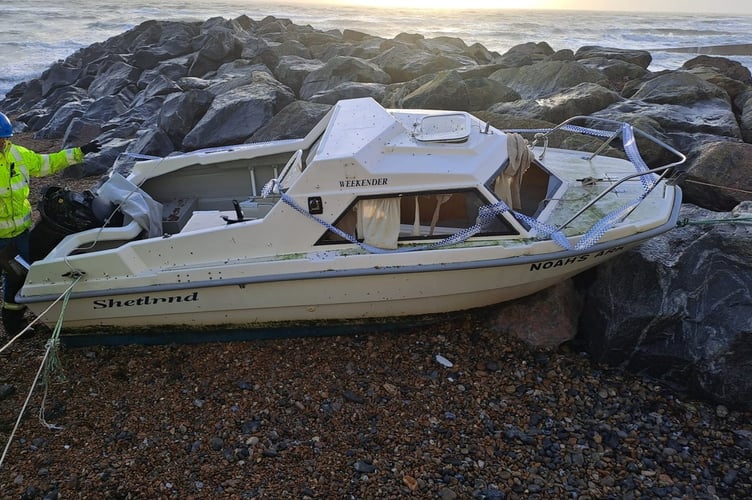 ‘The boat was secured to rock and the promenade, awaiting recovery.