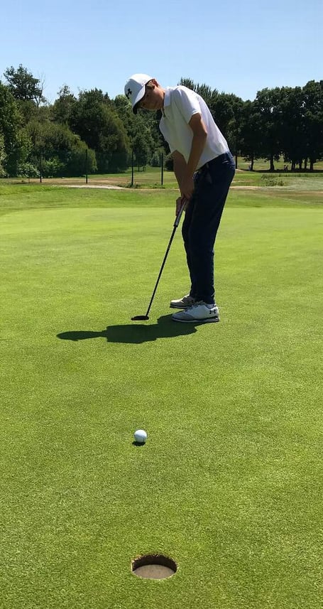 Amos is just 13 years of age and after a great start to the season is already playing off a handicap of 11. The match had an unusually early start due to the World Cup match being played later that day.