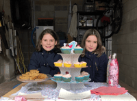 Sisters' garage cake sale for Rowcroft